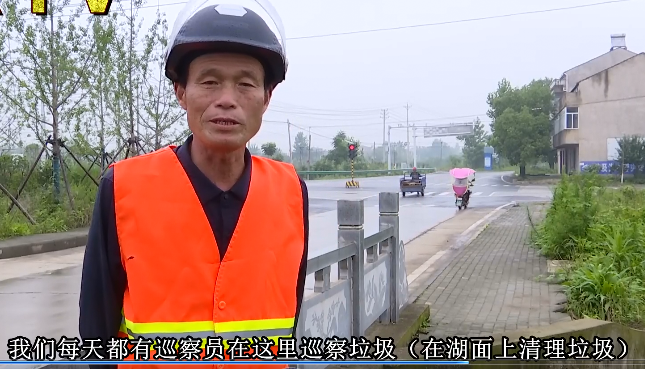 这个汀桥港是我们惠民保洁的(治理区域),我们每天都有巡察员这里巡察垃圾(在河面上打扫垃圾),我们及时进行了处理。