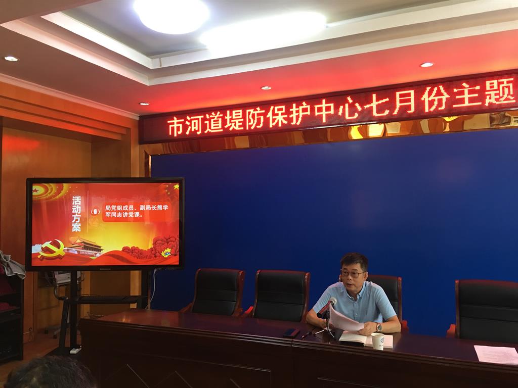 (市河道堤防保护中心)7月29日,市河道堤防保护中心组织全体党员在大会议室开展七月主题党日活动,局党组成员、副局长熊学军同志参加活动并讲党课。