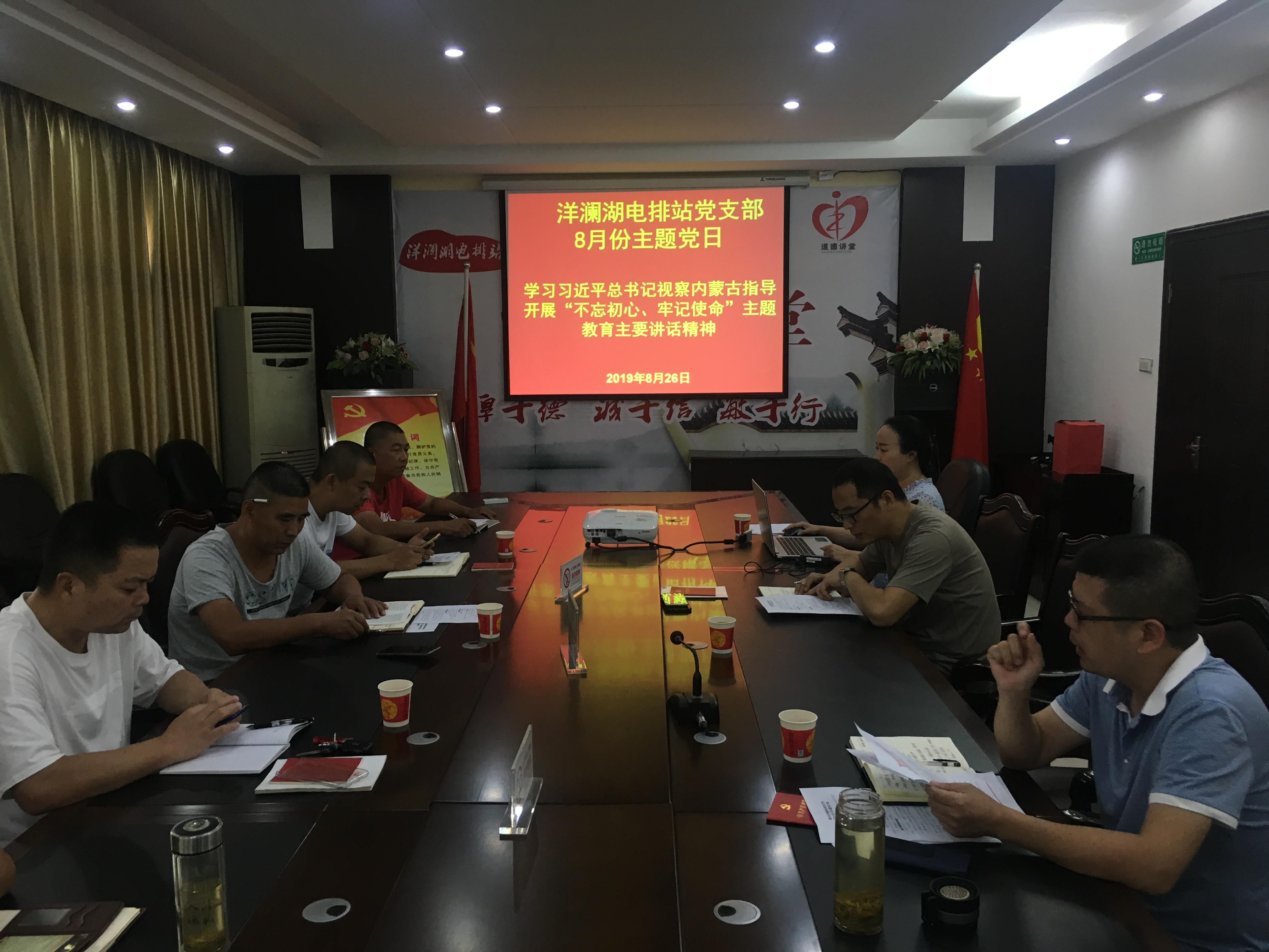 当日下午3:00,我站支部首先完成了“3+X”规定动作:集体重温入党誓词、共同诵读《中国共产党章程》、自觉缴纳8月份党费;接下来,站支部组织各党员先后学习了习近平总书记视察内蒙古指导开展“不忘初心、牢记使命”主题教育重要讲话精神、中央“不忘初心、牢记使命”主题教育印发《关于在“不忘初心、牢记使命”主题教育中认真学习党史、新中国史的通知》、习近平总书记关于扫黑除恶专项斗争的重要指示精神、中央关于专项斗争的最新决策部署及中央扫黑除恶督导”回头看”反馈意见、省扫黑除恶专项督导反馈问题、英山县孔家坊乡农村福利院院长周倩同志先进事迹;随后,通过无记名投票的方式评选出卫建军同志为8月之星;最后,站支部邀请水利和湖泊局副局长熊学军同志以“不忘初心、牢记使命”主题教育为主题给各党员上了一堂生动的党课。