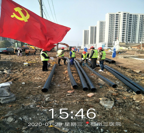 为遏制新冠病毒疫情扩散,加强对患者的救治,市委、市政府决定紧急建设疫情防控应急医院。集团公司抽调精兵强将,组建突击队,制定施工方案,加班加点,精心施工,一个个鄂州版“小汤山”医院相继通水:临空经济区临时观察点元月31日通水,雷山医院一期2月4日通水,二期2月21日给水工程完工,梁子湖人民医院2月5日通水,省中医院葛店分院2月16日给水工程完工,2月18日接到指令后,突击队又奔赴杨叶留观点实施给水工程······此外,集团各营销部门主动巡查全市医疗单位、集中留观点、医务人员休息点的用水情况,确保用水无忧。