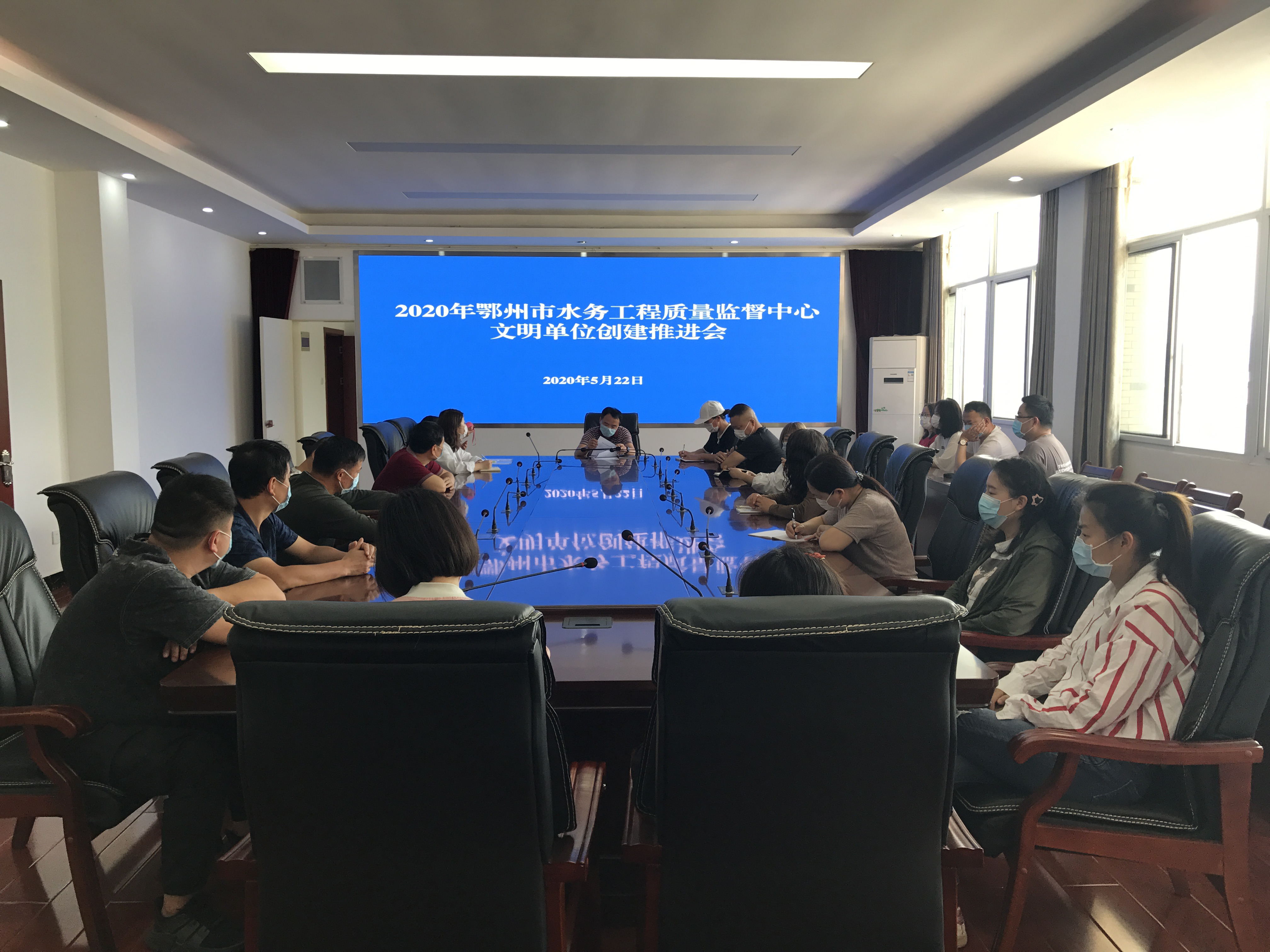 (市水务工程质量监督中心供稿)2020年是我市创建全国文明城市决战决胜年。为进一步推进全国文明城市创建工作,确保实现创建目标,根据市文明办文件精神,2020年5月22日,市水务工程质量监督中心举办文明单位创建推进会。会议由党支部书记曹国军主持,中心干部职工共计20余人参会。