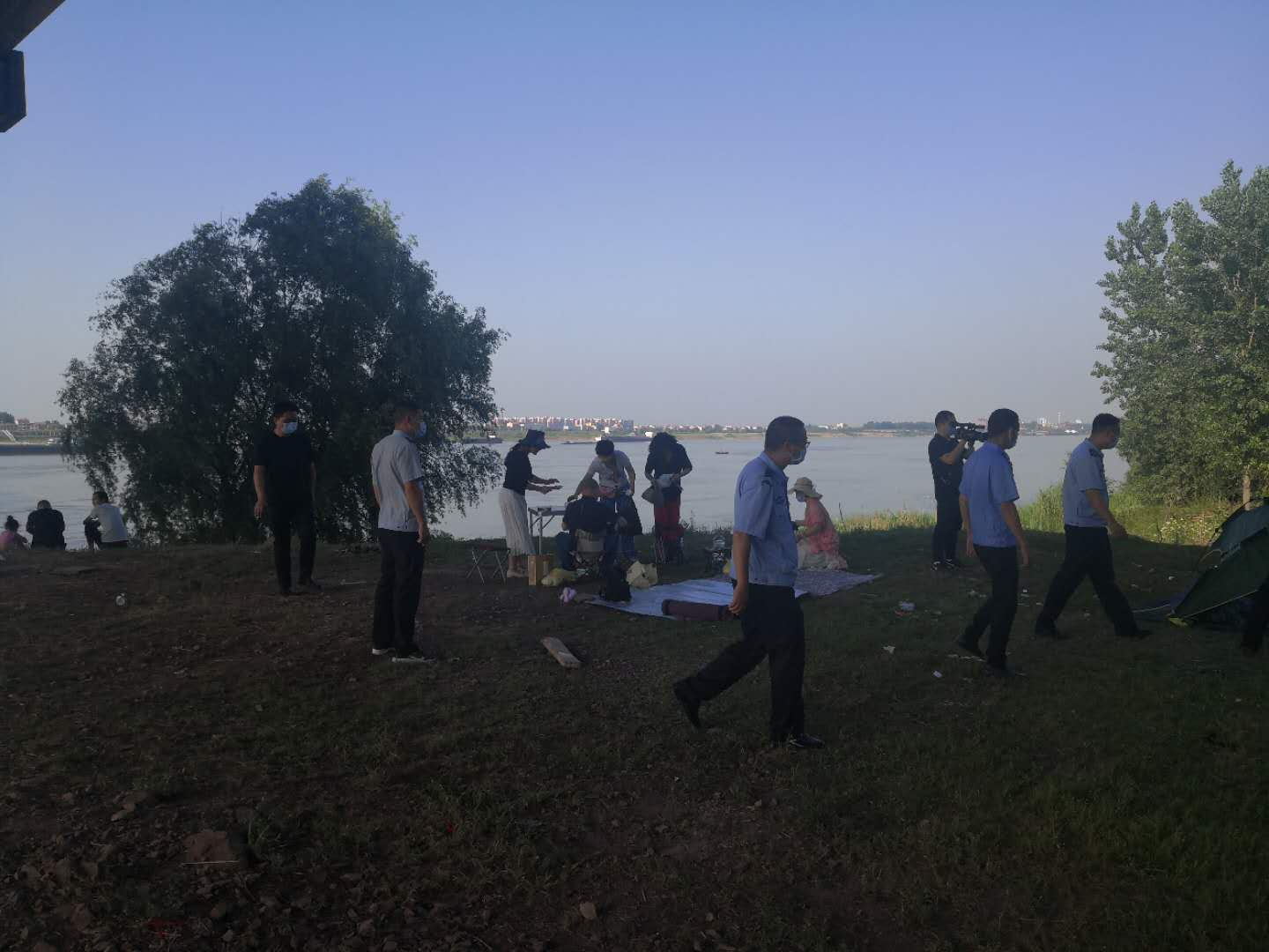 劝导人员现场劝离了2户在江堤上进行野炊露营的家庭、2户吃烧烤的家庭。在野炊、烧烤现场,随处可见油污、食物残渣、纸碗、纸巾等,现场还请了市融媒体中心对此次不文明行为进行曝光,随后市水政监察支队志愿者对现场垃圾进行清理,恢复江堤环境卫生。
