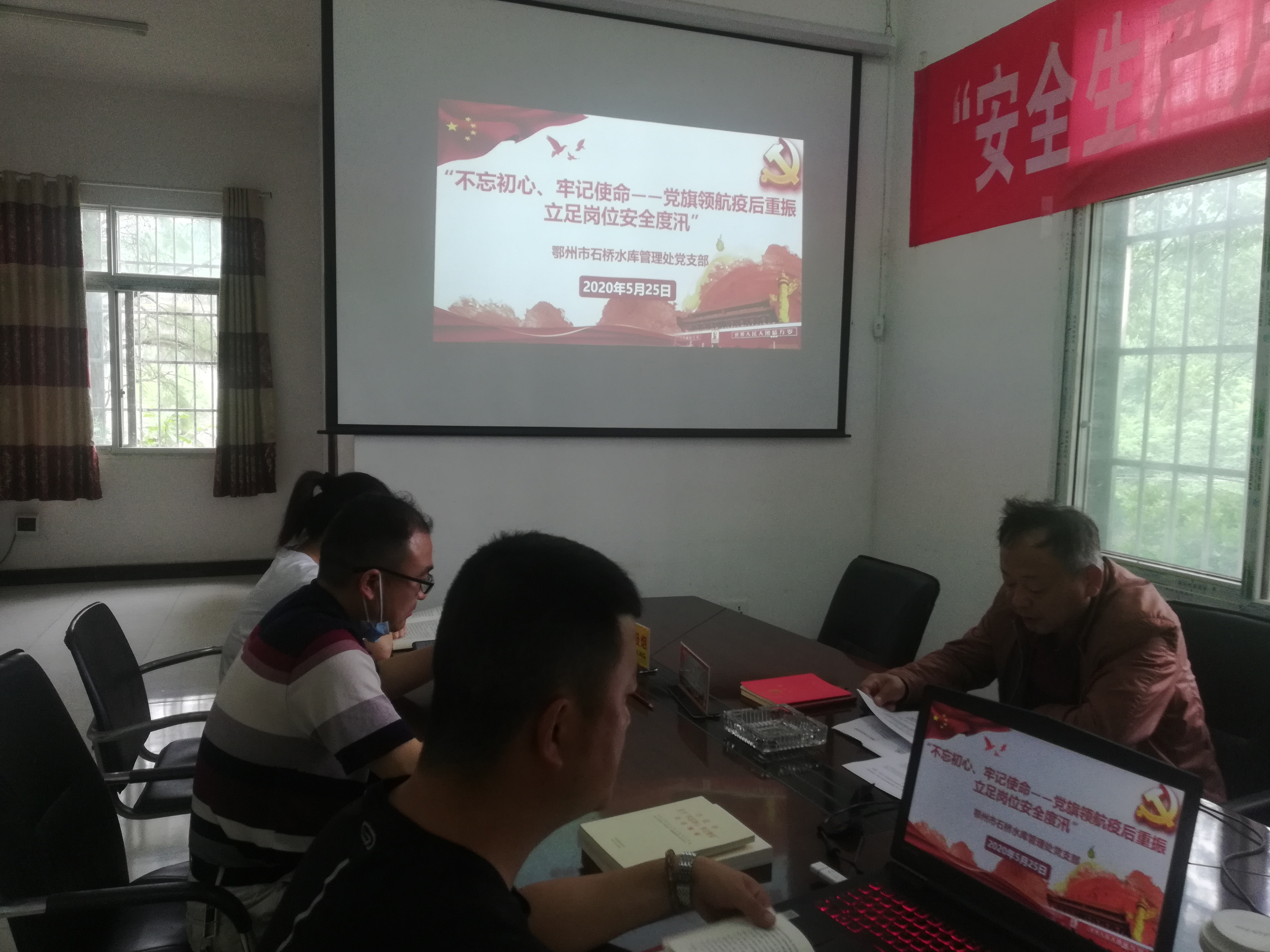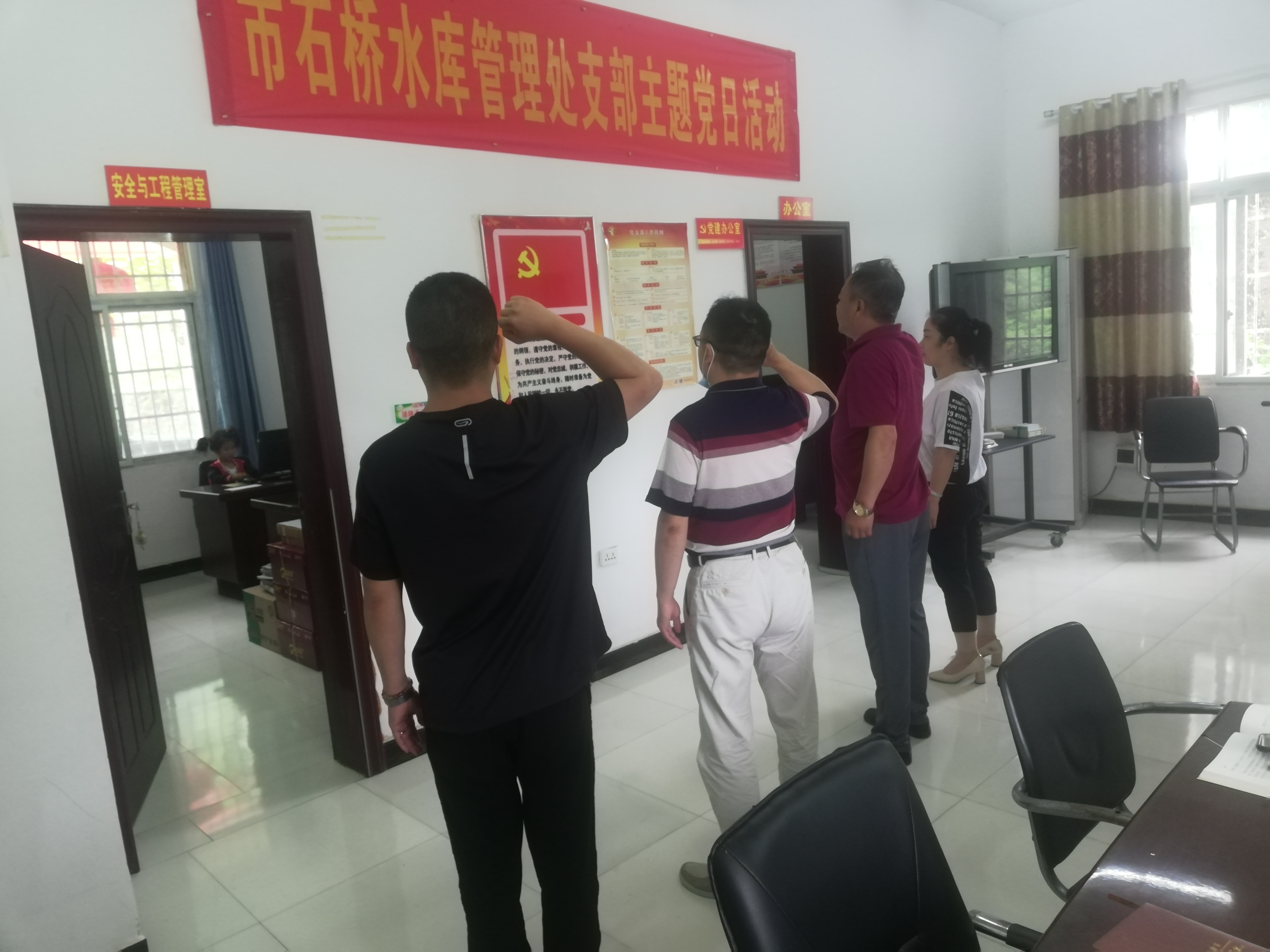 市石桥水库管理处党支部5月份“不忘初心、牢记使命——党旗领航疫后重振立足岗位安全度汛”主题党日活动