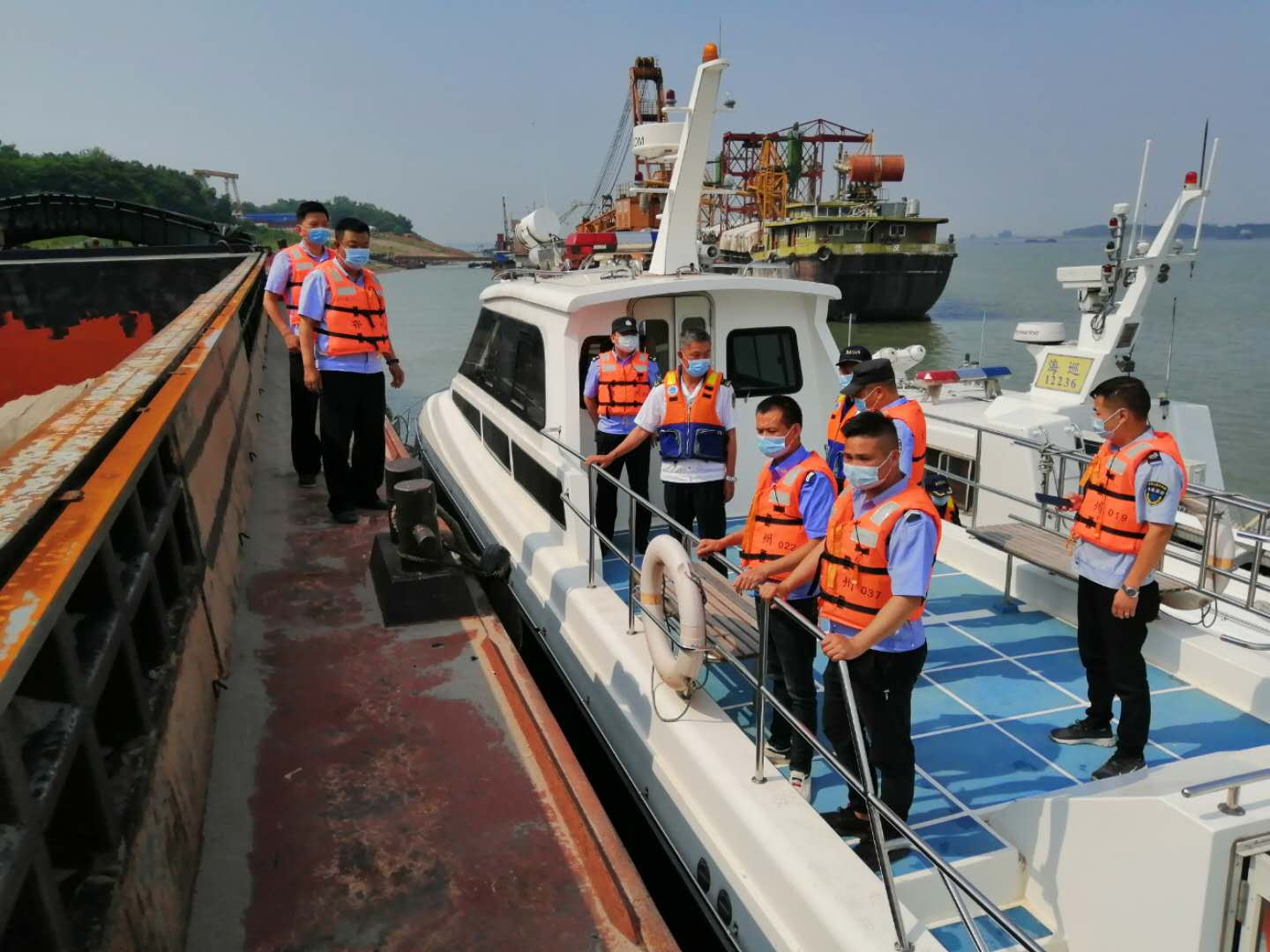 2020年5月27日下午,市水政监察支队联合长航公安鄂州派出所、鄂州海事处对熊家沟至人民洲水域进行联合执法清江行动。14时,市水政监察支队执法人员从熊家沟水务执法基地登艇出发,与长航公安鄂州派出所执法艇在鄂州北门海事处会合,一同对鄂州长江段码头进行巡查,重点查看码头有无涉砂违法行为。15时,鄂州水政执法艇、长航公安鄂州派出所执法艇到达三江水域与鄂州海事处执法艇会合,三家单位共同对三江水域内停泊的各类船舶通过排查方式逐一登船检查,重点检查有无涉砂违法船舶停靠,此次清江行动于17时结束。