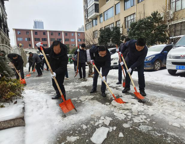 2月23日早晨,市水利系统积极响应市委市政府号召,在党组书记、局长叶斌的带领下,近80余名党员干部继续奔赴金州星城小区、明珠金色家园小区、昌盛小区,全体干部职工以高度的责任心和饱满的工作热情迅速投入到清雪行动。大家手拿铁锹,铲的铲、推的推,分工明确,相互配合,全力清除积雪,最大限度减少本轮降雪天气带来的不良影响,消除安全隐患,切实保障道路畅通和群众出行安全。