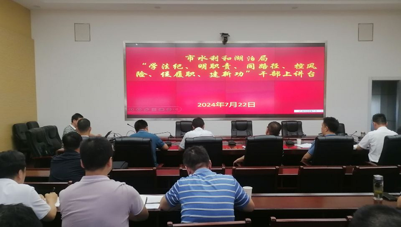 为推动党纪学习教育走深走实,7月22日,十大网赌靠谱平台举办“学法纪、明职责、通路径、控风险、促履职、建新功”干部上讲台活动,局机关全体公务员、局属单位主要负责人、水利项目建办人员参加。