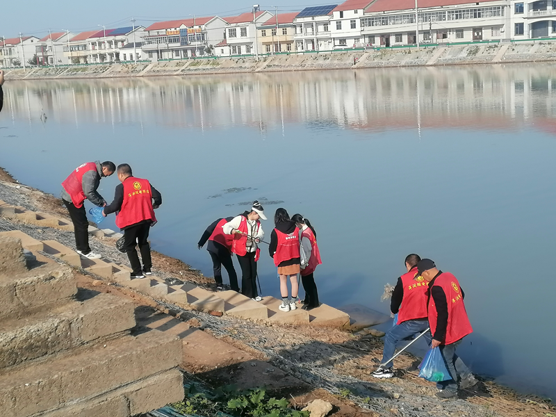 志愿者们沿河道沿线捡拾垃圾,宣传宪法和水法规,推进清洁家园行动,共同缔幸福河湖。