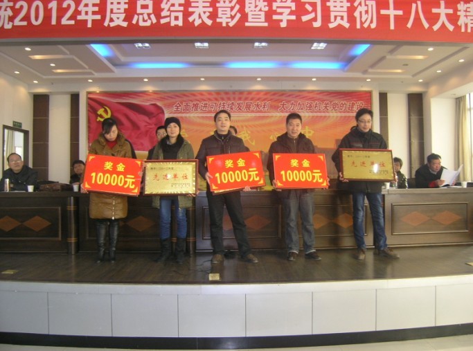 12月30日,全市水务系统总结表彰暨学习贯彻十八大精神大会召开,回顾总结过去一年的经验,高起点,高标准谋划明年的工作。局党组书记、局长吴学富作重要讲话,会议由局党组成员、副局长纪家立主持,局党组成员、副局长汪建国宣读局党组表彰决定,局机关全体干部职工及二级单位班子成员参加会议。