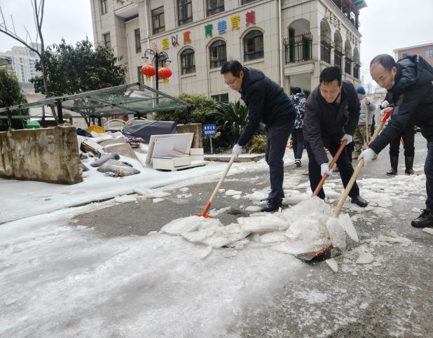 2月22日早晨,網上娛樂城机关组织市河道堤防保护中心、市洋澜湖电排站、市水政监察支队近60余名党员干部下沉金州星城小区、明珠金色家园小区、昌盛小区开展路面除冰工作。工作人员现场用铁锹破冰除雪,将三个小区主要路面积雪全部清扫完毕,确保居民出行安全。
