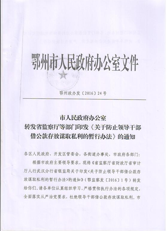 市政府办关于转发省监察厅等部门印发《关于防止领导干部借公款存放谋取私利的暂行办法》的通知
