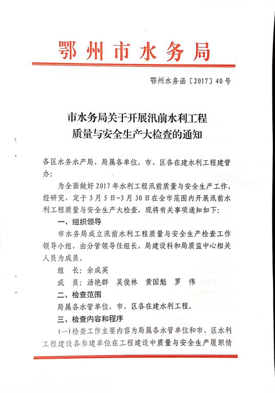 市水务局关于开展汛前水利工程质量与安全生产大检查的通知