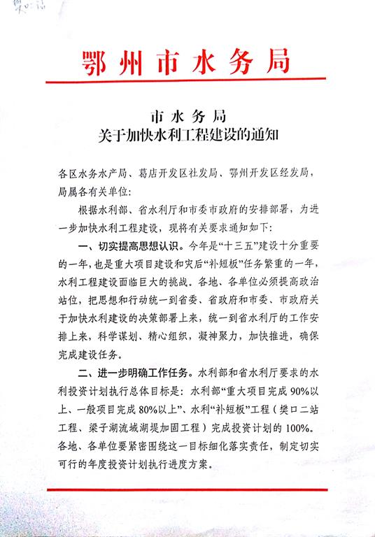 市水务局关于加快水利工程建设的通知