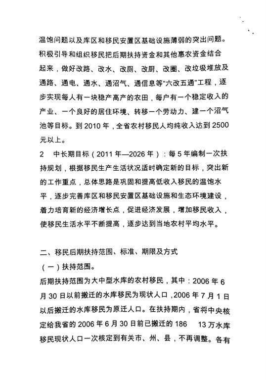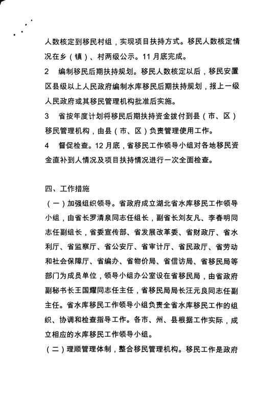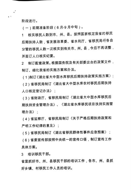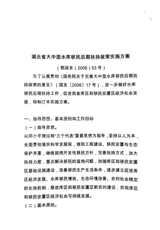 湖北省大中型水库移民后期扶持项目扶持政策实施方案
