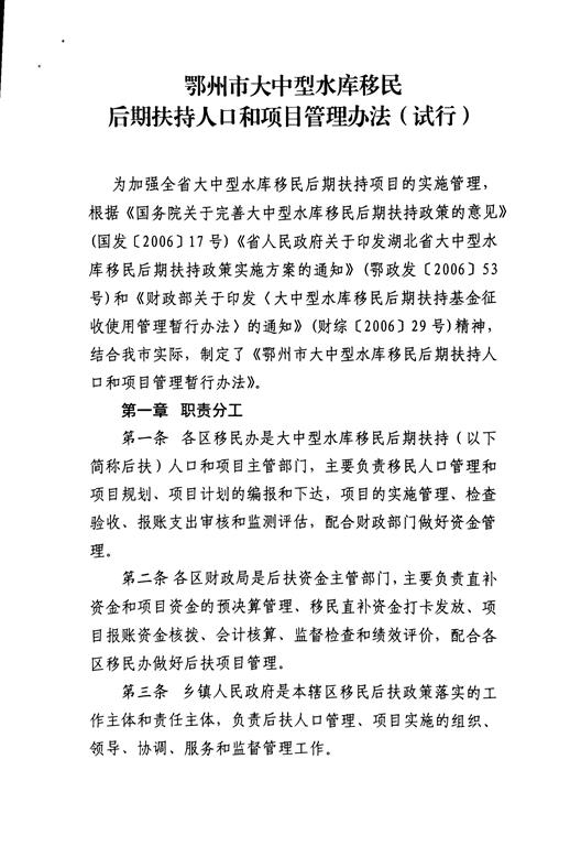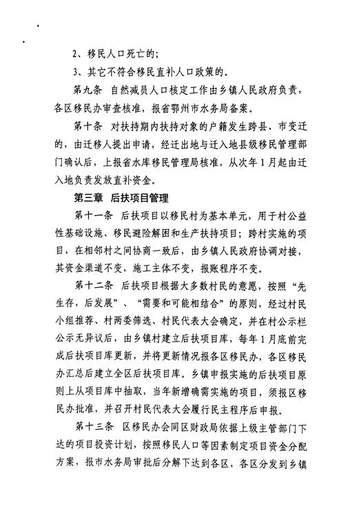 鄂州市大中型水库移民后期扶持人口和项目管理办法
