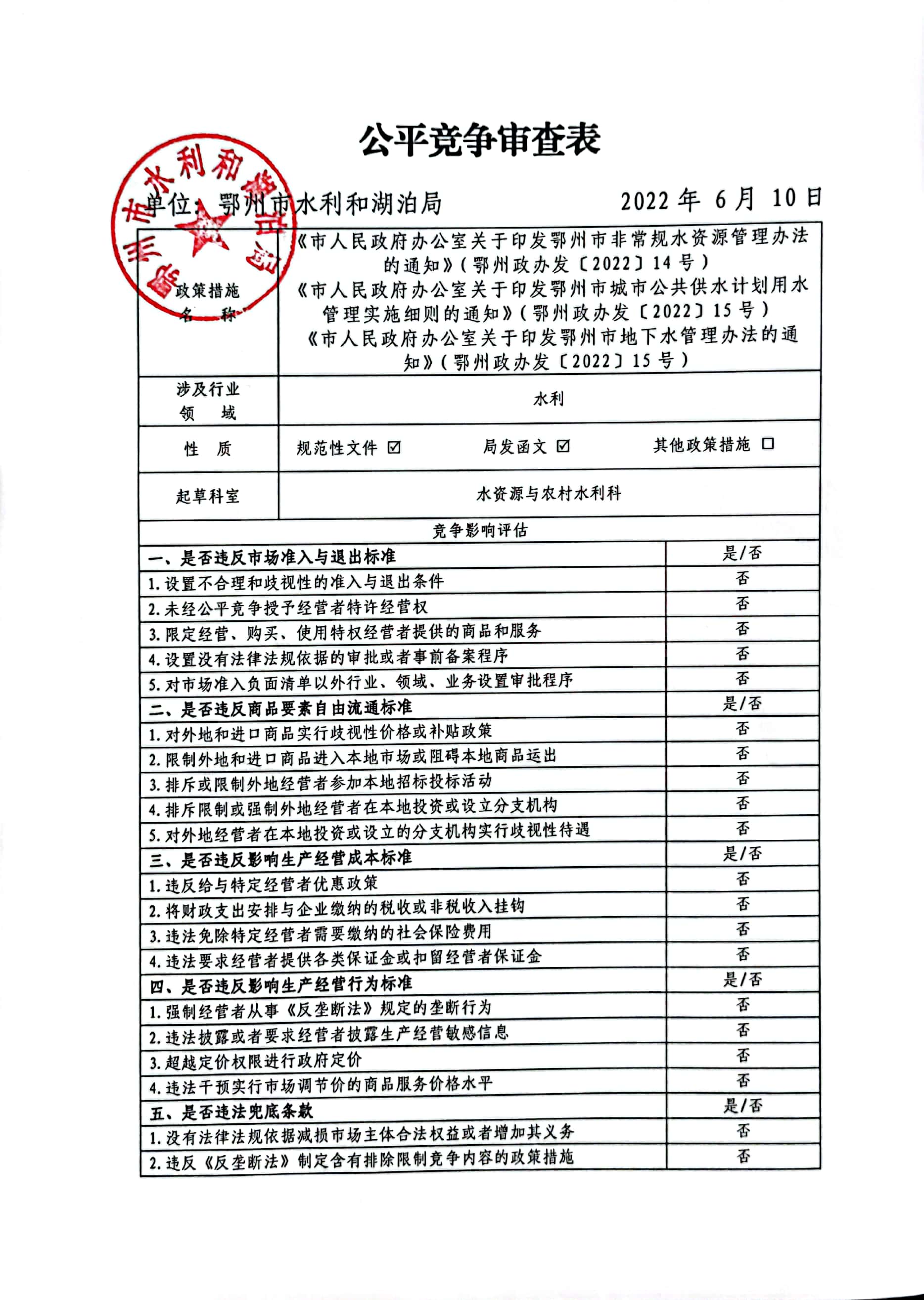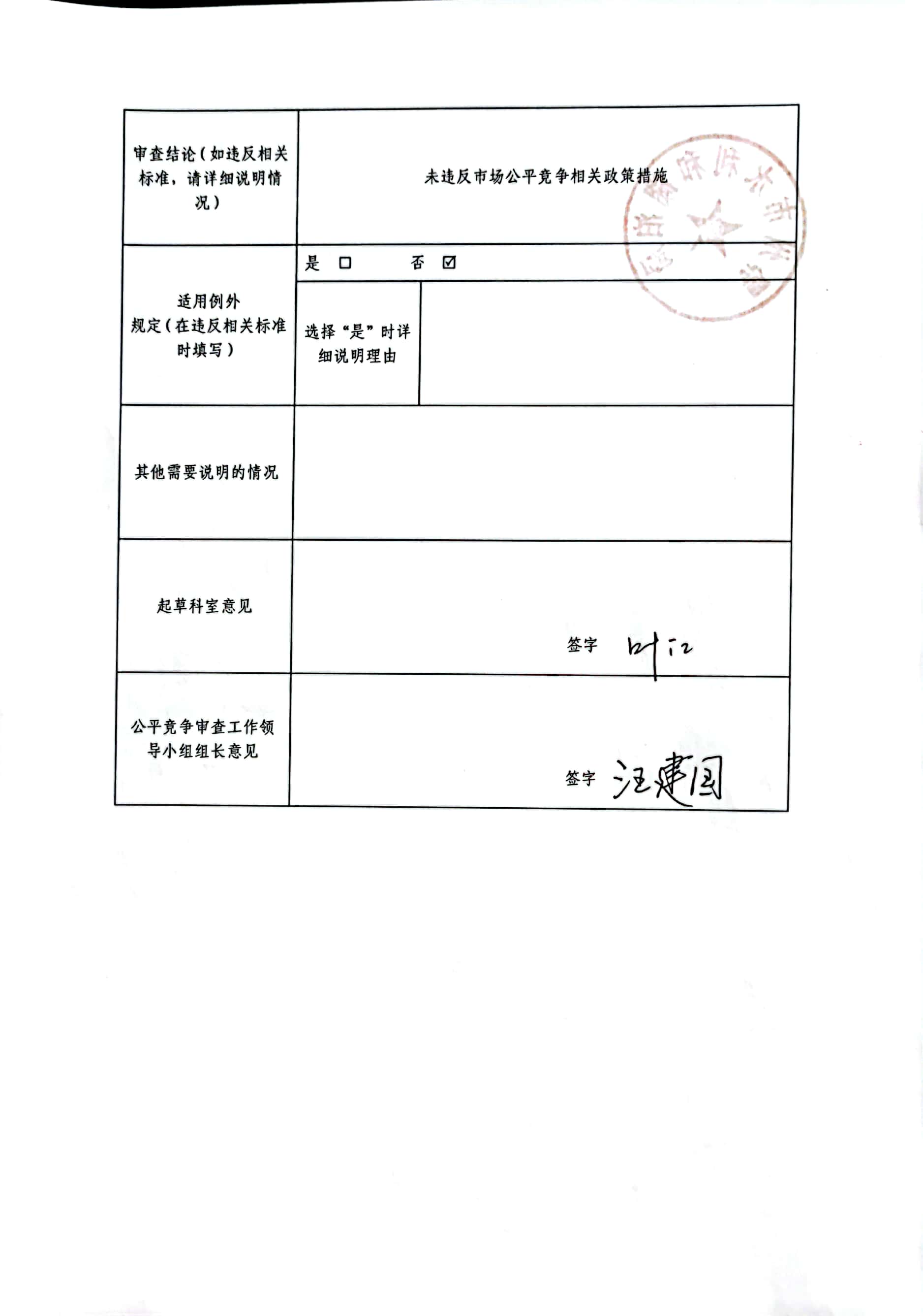 公平竞争审查表